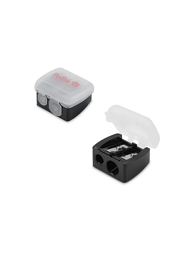 Sacapuntas doble Pollié ideal de Cosmética, para perfiladores más finos y más gruesos, accesorio básico para poder afilar tus perfiladores de maquillaje correctamente. Sin este afilador especial estropeas tus lápices para ojos y labios, malgastándolo.